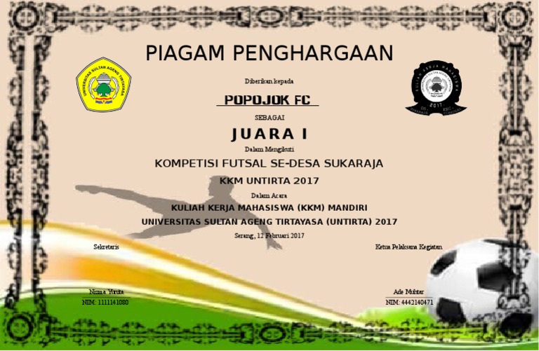 Piagam Penghargaan Pemain Terbaik Pdf