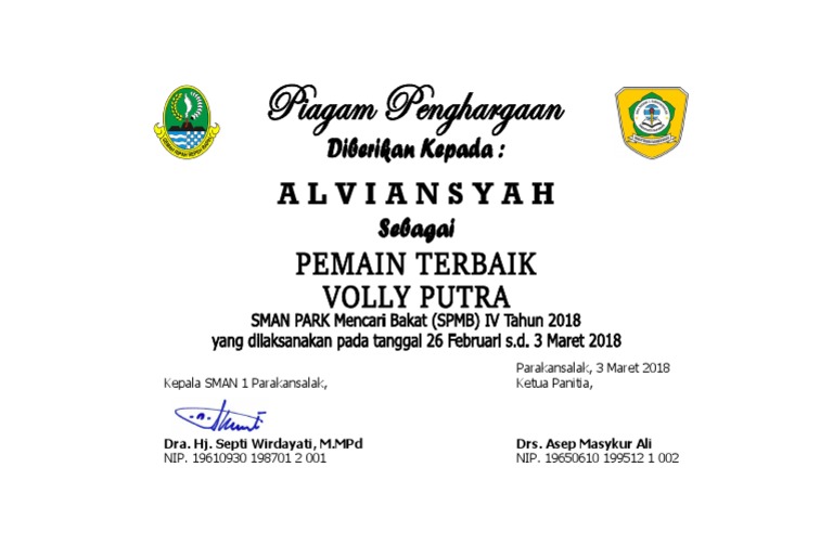 Contoh Piagam Penghargaan Juara Lomba Volley Keren Imago Media Home Of Creativity